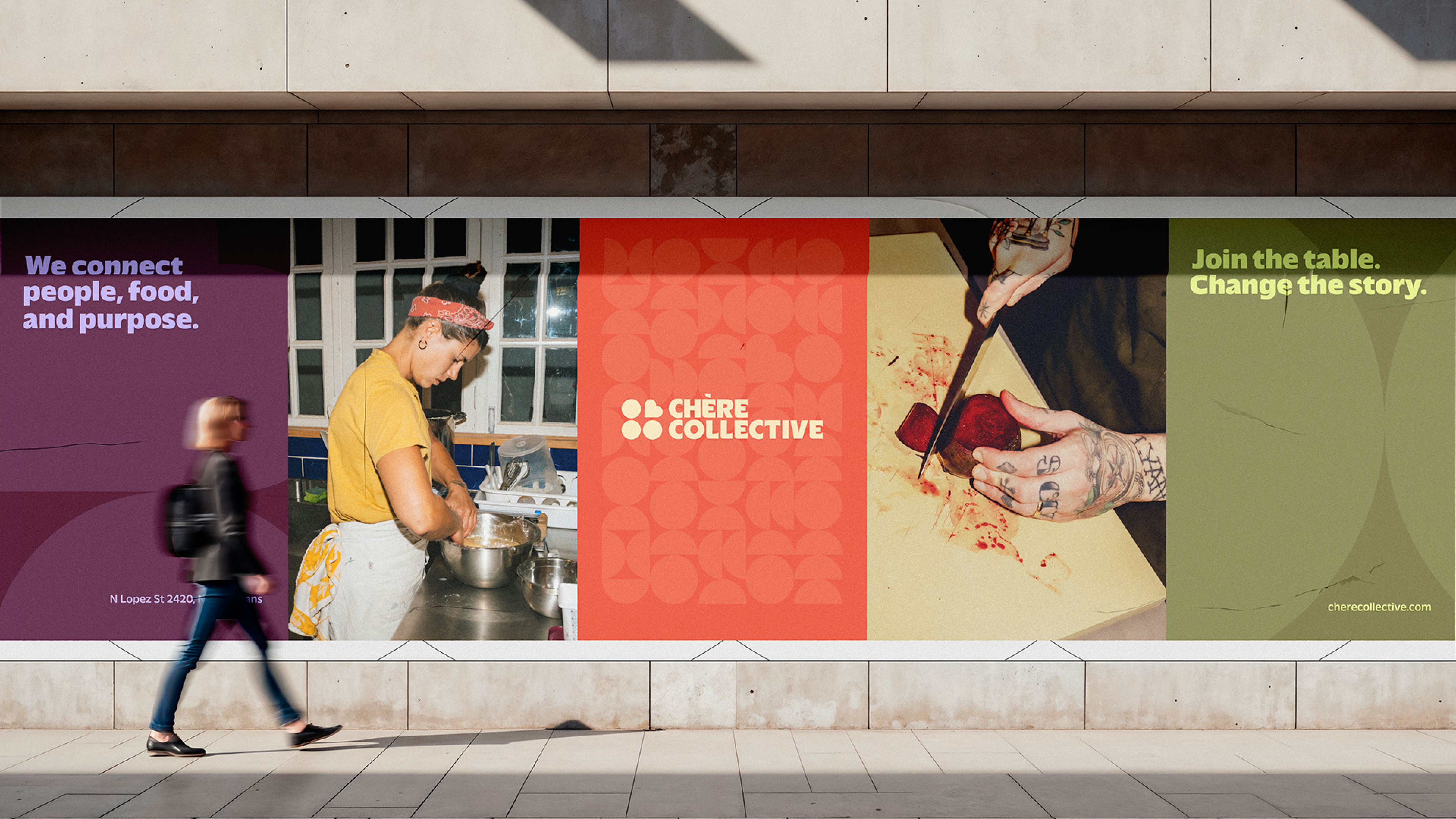 Chère Collective is a conceptual brand identity for a New Orleans food charity dedicated to food justice and community support. Inspired by the resilience and culinary culture of the city, the identity uses bold typography, vibrant food-inspired colors, and documentary-style imagery to communicate warmth, dignity, and collective action. The visual system is designed to work across murals, posters, packaging, and digital platforms to build awareness and invite community participation.